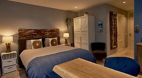 ZimmerFühl dich in den 2 Zimmern, die individuell ausgestattet sind und Kühlschrank und einen Smart-TV bieten, wie zu Hause. Dein Memory-Foam Bett bietet Daunenbettdecken und hochwertige Bettwaren. Ein WLAN-Internetzugang (kostenlos) ist ebenso verfügbar wie Digitalempfang. Es gibt eigene Badezimmer mit Duschen, die über Regenduschen und kostenlose Toilettenartikel verfügen.