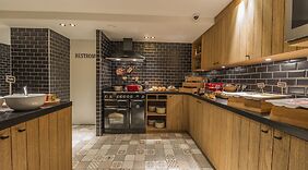 RestaurantEngelsk morgenmad tilbydes mod gebyr dagligt fra kl. 07.00 til kl. 10.30.