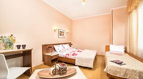 ZimmerFühl dich in einem der 24 Zimmer, die Kühlschrank und einen Plasmafernseher bieten, wie zu Hause. Ein WLAN-Internetzugang (kostenlos) ist ebenso verfügbar wie Satellitenempfang. Es sind eigene Badezimmer mit Badewannen vorhanden, die über Haartrockner und Hausschuhe verfügen. Zur Austattung gehören Telefone ebenso wie Safes und Schreibtische.