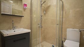 ZimmerDie Kochnische ermöglicht es dir, leckere Gerichte zuzubereiten. Das Badezimmer ist mit einer Dusche mit einer Regendusche und einem Haartrockner ausgestattet.
