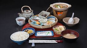 RestaurantMasuya Ryokan bietet seinen Gästen ein Restaurant mit köstlichen Speisen.