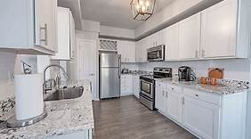PokojeV tomto apartmánu s osobitou výzdobou a kuchyní, k jejímuž vybavení patří lednička a trouby, se budete cítit jako doma. Bezdrátový internet zdarma vám zajistí spojení se světem a 50palcová Smart televize, která nabízí digitální kanály, dobrou zábavu. Další užitečné vybavení a služby: psací stůl a oddělený sedací kout.