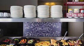 RestaurantGenieße französische Küche im LE PATIO, einem ein Restaurant, das eine Bar/Lounge bietet, oder bleib bequem auf deinem Zimmer und nutz den Zimmerservice (bitte Zeiten beachten). Ein Frühstücksbuffet wird unter der Woche von 06:30 Uhr bis 10:00 Uhr gegen Gebühr angeboten.