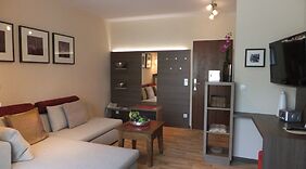 PokojeV jednom z 30 pokojů, k jejichž vybavení patří kuchyňský kout, lednička/mraznička a varná deska, se budete cítit jako doma. Bezdrátový internet zdarma vám zajistí spojení se světem a televize s plochou obrazovkou, která nabízí satelitní kanály, dobrou zábavu. Další užitečné vybavení a služby: telefon, vestavěný trezor a kávovar/čajovar.