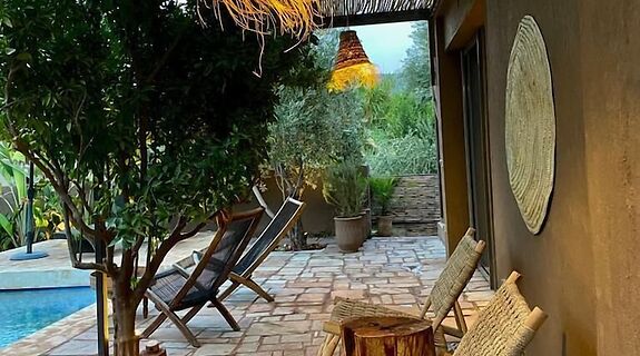 LageMehrLe Figuier du lac in Bin el Ouidane liegt am See und 6,5 km von Staudamm von Bin el Ouidane sowie 11,6 km von Ouzoud-Fälle entfernt. Diese Villa ist 30,3 km von Hôpital Atlas d'Azilal entfernt.