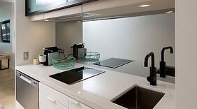 ZimmerFühl dich in einem der 60 klimatisierten Zimmer, die Kochnischen bieten, die über Kühlschränke und Herdplatte verfügen, wie zu Hause. Flachbildfernseher, mit denen du Premium-TV-Sender sehen kannst, und ein WLAN-Internetzugang (kostenlos) sind vorhanden. Zur Austattung gehören Telefone ebenso wie Safes und Schreibtische.