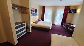 PokojeV jednom z 24 pokojů, k jejichž vybavení patří televize s plochou obrazovkou, se budete cítit jako doma. Televize, která nabízí satelitní kanály, vám zajistí dobrou zábavu. K vybavení koupelen patří sprcha a vysoušeč vlasů. Další užitečné vybavení a služby: psací stůl a na vyžádání také kolébky/dětské postýlky (za příplatek). Úklid pokojů se provádí denně.