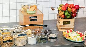 RistoranteLa colazione a buffet è servita gratuitamente dalle ore 06:30 alle ore 09:30 nei giorni feriali e dalle ore 07:30 alle ore 10:30 nel fine settimana.