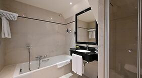 ZimmerFühl dich in einem der 118 Zimmer, die Minibar und einen Flachbildfernseher bieten, wie zu Hause. In deinem Zimmer findest du ein Pillowtop-Bett mit hochwertige Bettwaren vor. Ein WLAN-Internetzugang (kostenlos) ist ebenso verfügbar wie Kabelempfang. Die Badezimmer bieten Badewannen und Duschen (separat), Designer-Toilettenartikel und Haartrockner.