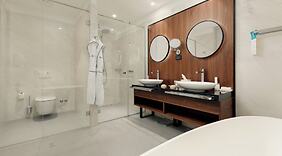 НомераПочувствуйте себя как дома в одном из 50 номеров с кондиционером и другими удобствами, в числе которых: минибар и кофеварки эспрессо. Чтобы вам не пришлось скучать, в номерах установлены плоскоэкранные телевизоры, на которых можно смотреть кабельное телевидение, а бесплатный беспроводной доступ к интернету позволяет всегда оставаться на связи. В ванных комнатах совмещенные душ и ванна, бесплатные туалетные принадлежности и фен. Предоставляются следующие удобства и услуги: сейфы и выделенные зоны для отдыха. Уборка номеров осуществляется ежедневно.