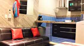 部屋全 4 室ある冷房完備の客室には、冷蔵庫、コンロなどが備わった簡易キッチンがあり、ゆったりおくつろぎいただけます。42 インチの薄型テレビでケーブルをご覧いただけるほか、WiFi (無料)などもご利用いただけます。