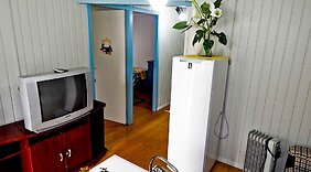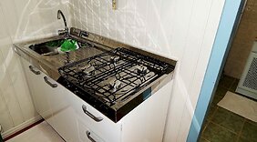 QuartosSinta-se em casa nesta casa de férias com cozinha, um frigorífico e uma placa de cozinha.