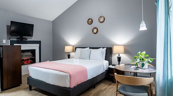 部屋全部で 23 室ある客室には電子レンジ、DVD プレーヤーなどが備わっており、ゆっくりおくつろぎいただけます。各客室には、専用のパティオがあります。WiFi (無料)をお使いいただけるほか、ケーブルの番組をご覧いただけます。専用バスルームには、ヘアドライヤー、バスローブが付いています。