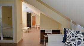 CamereAlloggia in una delle 20 camere della struttura! Nella tua sistemazione, completa di angolo cottura con frigorifero con congelatore e piano cottura, ti sentirai come a casa. I comfort includono scrivanie e salotti separati, mentre le pulizie sono eseguite servizio di pulizie su richiesta.