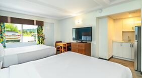 ZimmerFühl dich in einem der 63 klimatisierten Zimmer, die Kochnischen bieten, die über Kühlschränke und Herdplatte verfügen, wie zu Hause. 40 Zoll groáe LED-Fernseher mit Kabelempfang sorgen fr gute Unterhaltung; auáerdem steht ein WLAN-Internetzugang (kostenlos) zur Verfgung. Zur Austattung gehören Mikrowellen und Wasserkocher mit Kaffee-/Teezubehör sowie Telefone, mit denen du kostenlose Ortsgespräche führen kannst.