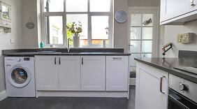 ZimmerMach es dir in diesem Ferienhaus mit individueller Ausstattung gemütlich. In der Küche, die über einen Kühlschrank und einen Geschirrspüler verfügt, wirst du dich wie zu Hause fühlen. Vor Ort findest du jeglichen Komfort, darunter einen Wasserkocher und eine Waschmaschine.