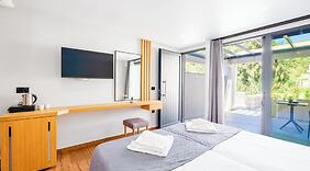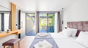 Odalar16 klimalı oda mevcuttur. Odalarda özel balkon bulunur. Odada ücretsiz kablosuz internet vardır. Banyolarda duş kabini ve saç kurutma makinesi vardır.