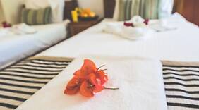 ZimmerFühl dich in einem der 16 Zimmer wie zu Hause. Die Zimmer haben eigene möblierte Balkone oder Patios. Badezimmer mit Duschen sind vorhanden. Zur Austattung gehören Safes und kostenloses Mineralwasser; die Zimmer werden täglich sauber gemacht.