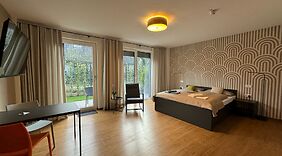 ZimmerFühl dich in einem der 65 klimatisierten Zimmer, die über Fußbodenheizung und einen Flachbildfernseher verfügen, wie zu Hause. In den Küchen finden sich Kühlschränke, Herdplatte und Mikrowellen. Ein WLAN-Internetzugang (kostenlos) ist ebenso verfügbar wie Satellitenempfang. Zur Austattung gehören Schreibtische und separate Sitzecken; die Zimmer werden einmal pro Aufenthalt sauber gemacht.