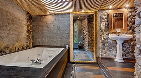 PokojePoczuj się jak w domu w 19 pokojach, których wyposażenie to kominki i prywatne jacuzzi wewnątrz. Bezpłatny bezprzewodowy dostęp do internetu zapewni łączność ze światem. Prywatna łazienka — wyposażenie: wanna i prysznic osobno, wanny z hydromasażem i prysznic z deszczownicą.