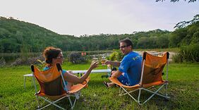 施設テラスからの眺めを楽しみ、ピクニックエリアや炭火グリルなどをお使いいただけます。