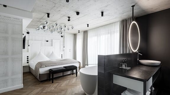 CamereRilassati in una delle 50 camere della struttura, complete di frigorifero e minibar. Grazie ad un comodo letto con copriletto in piuma e biancheria da letto di alta qualità dormirai sonni tranquilli. Il Wi-Fi gratuito ti consente di restare in contatto con il mondo. Il bagno parzialmente a vista dispone di doccia, set di cortesia gratuiti e asciugacapelli.