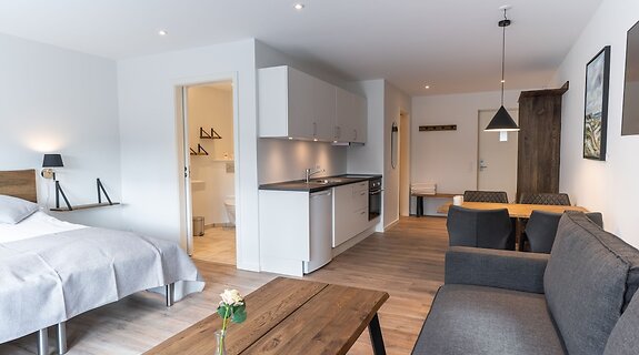 部屋全 12 室ある客室には、冷蔵庫、オーブンなどの備わったキッチンがあり、ゆったりおくつろぎいただけます。WiFi (無料)をお使いいただけるほか、デジタルの番組をご覧いただけます。ハウスキーピング サービスは、リクエストにより行われ、アイロン / アイロン台のリクエストも受け付けています。
