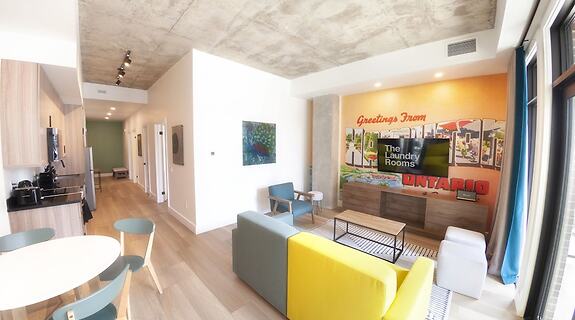 PokojePoczuj się jak w domu w 40 oryginalnie udekorowane pokojach, których wyposażenie to kuchnie (pełnowymiarowa lodówka i zamrażarka i piekarniki). Wyposażenie łóżek to pillowtop oraz pościel z egipskiej bawełny. Bezpłatny przewodowy i bezprzewodowy dostęp do internetu zapewni łączność ze światem, a 55-cal. Telewizory Smart TV i telewizja cyfrowa — rozrywkę. Udogodnienia obejmują biurka i oddzielne strefy wypoczynkowe oraz sprzątanie na życzenie.