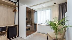 PokojeV jednom z 52 pokojů s osobitou výzdobou, k jejichž vybavení patří podlahové topení a LED televize, se budete cítit jako doma. Na posteli je připravena přizpůsobitelná matrace, prošívané přikrývky z prachového peří a exkluzivní ložní prádlo. K dispozici je bezplatné bezdrátové i pevné připojení k internetu a dobrou zábavu zajistí