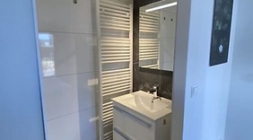 HuoneetTee olosi kotoisaksi yksilöllisesti kalustetussa loma-asunnossasi. Kylpyhuoneessa on suihkut.