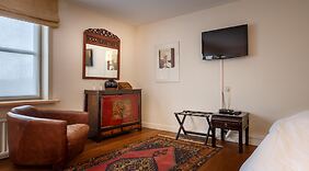 PokojeV jednom z 9 klimatizovaných pokojů se budete cítit jako doma. Spojen¡ se světem vám zajistí bezdrátový internet zdarma. K vybavení koupelen patří vana se sprchou a toaletní potřeby zdarma. Další užitečné vybavení a služby: telefon, vestavěný trezor a psací stůl.