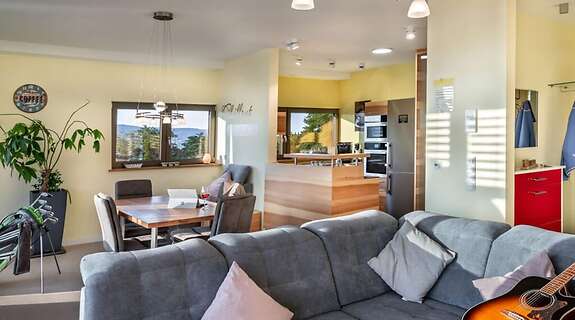PokojeV tomto apartmánu s osobitou výbavou se budete cítit jako doma. Ubytování má vlastní balkon. Další užitečné vybavení a služby: pračka/sušička a žehlička a žehlicí prkno.