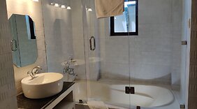 RomFøl deg som hjemme i et av de 7 aircondition-avkjølte gjesterommene som også har kjøleskap og smart-TV. Sengen har memory foam-madrass og sengetøy av topp kvalitet. Gjester kan lage måltider i et delt/felles kjøkken. Du kan holde deg oppdatert med wi-fi (inkludert) på rommet, og underholdningen er sikret med digital-TV. Rommene har privat bad med badekar eller dusj, hårføner og tøfler.