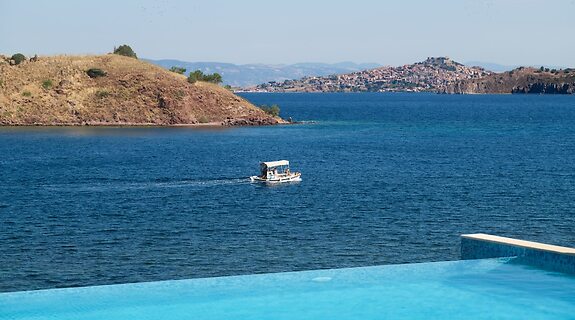 LageMehrLittle Bird in Lesbos liegt am Meer, eine 3-minütige Fahrt von Strand von Anaxos und eine 8-minütige Fahrt von Strand von Petra entfernt. Diese Pension in Strandnähe ist 9 km von Hafen von Molyvos und 9,6 km von Schloss Molyvos entfernt.