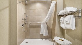 部屋全部で 113 室ある客室には冷蔵庫、液晶テレビがあります。有線インターネット アクセス / WiFi を無料でお使いいただけるほか、ケーブルの番組をご覧いただけます。シャワー付き浴槽のある専用バスルームには、バスアメニティ (無料)、ヘアドライヤーが備わっています。デスク、新聞 (無料)の他に、市内通話 (無料)付きの電話をご利用いただけます。