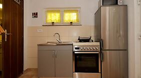 ZimmerFreu dich in deinem Privatbereich auf einen möblierten Balkon. Die Küche verfügt über einen großen Kühlschrank mit Gefrierfach, einen Ofen und eine Herdplatte. Mit dem WLAN-Internetzugang (kostenlos) bleibst du in Verbindung, während ein Flachbildfernseher eine unterhaltsame Auszeit verspricht. Das Badezimmer ist mit einer Dusche und einem Haartrockner versehen. Vor Ort findest du jeglichen Komfort, darunter eine Mikrowelle und eine Waschmaschine.