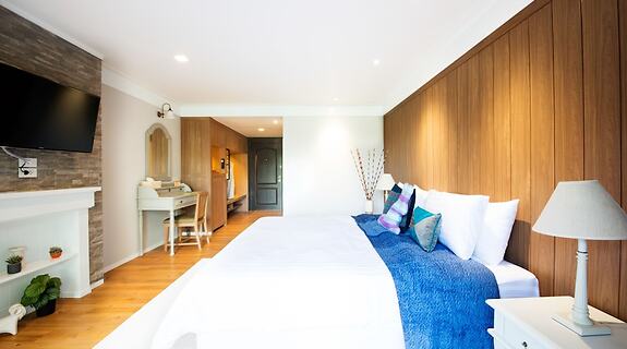 部屋全部で 52 ある冷房完備の客室には冷蔵庫、薄型テレビなどが備わっており、ゆっくりおくつろぎいただけます。各客室には、専用のバルコニーがあります。WiFi (無料)をお使いいただけるほか、衛星放送の番組をご覧いただけます。シャワーのある専用バスルームには、バスアメニティ (無料)、ヘアドライヤーが備わっています。