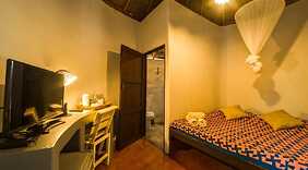 部屋全部で 10 ある冷房完備の客室には冷蔵庫、液晶テレビなどが備わっており、ゆっくりおくつろぎいただけます。WiFi (無料)をお使いいただけるほか、ケーブルの番組をご覧いただけます。シャワー付き浴槽のある専用バスルームには、温泉、バスアメニティ (無料)が備わっています。コーヒー / ティーメーカー、ボトルウォーター (無料)をご利用いただけ、ハウスキーピング サービスは、毎日行われます。