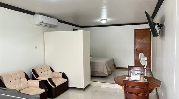 ZimmerFühl dich in einem der 2 Zimmer, die individuell eingerichtet sind und Kochnischen bieten, wie zu Hause. Dein Bett bietet Daunenbettdecken und hochwertige Bettwaren. Die Zimmer haben eigene Balkone. Es gibt einen kostenfreien Internetzugang per Kabel und WLAN; 50-Zoll Smart-TVs mit Digitalempfang sorgen für Unterhaltung.