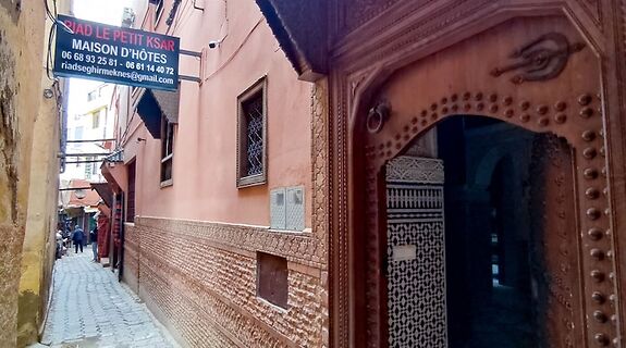 LageMehrRiad Le Petit Ksar in Meknes (Medina von Meknes) ist nur wenige Schritte entfernt von: Musée Dar Jamaï und El Hedim Platz. Dieser Riad ist 0,6 km von Mausoleum von Sidi ben Aïssa und 1,7 km von Bab Lakhmis Tor entfernt.