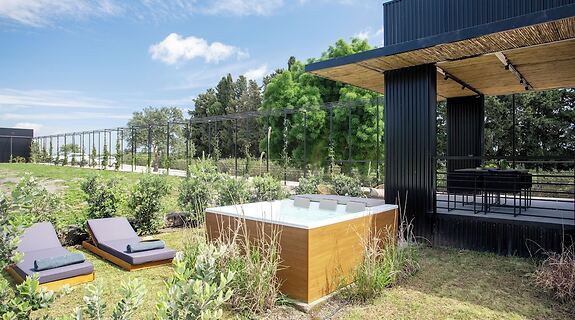 EjendomsfacilitetFra en have kan du nyde den skønne udsigt, eller du kan nyde godt af rekreative faciliteter, såsom en sæsonbestemt udendørs pool. Denne hytte tilbyder desuden gratis trådløs internetadgang og concierge-tjenester.