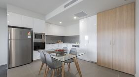 HotellrumSlå dig till ro i den här luftkonditionerade lägenheten, som har en stor kyl med frys och en ugn i köket. Det finns en privat balkong. En smart-tv och en dvd-spelare erbjuder underhållning, och gratis wi-fi gör att du kan hålla dig uppkopplad. Bekvämligheter som ingår är laptopanpassade värdeförvaringsskåp och skrivbord. Städning sker varje vecka.