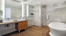 ZimmerFühl dich in einem der 130 klimatisierten Zimmer mit Minibar und Espressomaschine wie zu Hause. In deinem Zimmer findest du ein Pillowtop-Bett mit Bettwäsche aus ägyptischer Baumwolle vor. 50 Zoll groáe Flachbildfernseher mit Satellitenempfang sorgen fr gute Unterhaltung; auáerdem steht ein WLAN-Internetzugang (kostenlos) zur Verfgung. Die Badezimmer bieten Designer-Toilettenartikel und Haartrockner.