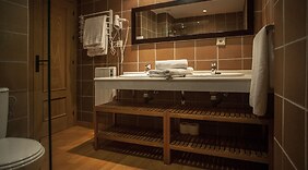 QuartosOs 50 quartos com mobília individualizada farão com que se sinta em casa. À sua espera tem uma kitchenette com um frigorífico e uma placa de cozinha. As opções de entretenimento incluem televisor plasma e internet sem fios. As comodidades incluem ainda cofres e micro-ondas. Há berços/camas para crianças disponível a pedido.