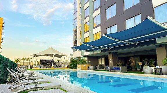 LageMehrThe Bellevue Manila in Muntinlupa (Alabang) ist nur 15 Minuten Fahrt von Zentrum von Alabang und Fort Bonifacio entfernt. Dieses Hotel für Familien ist 18,8 km von SM Mall of Asia und 14,5 km von Newport World Resorts entfernt.