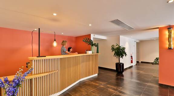 ZimmerFühl dich in den 106 Zimmern, die individuell ausgestattet sind und Espressomaschine und einen LCD-Fernseher bieten, wie zu Hause. Ein WLAN-Internetzugang (kostenlos) ist ebenso verfügbar wie Satellitenempfang. Es sind eigene Badezimmer mit Duschen vorhanden, die über kostenlose Toilettenartikel und Haartrockner verfügen. Zur Austattung gehören Schreibtische und Wasserkocher mit Kaffee-/Teezubehör sowie Telefone, mit denen du kostenlose Ortsgespräche führen kannst.
