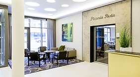 RestaurantDe délicieuses spécialités Cuisine internationale attendent les plus gourmands pour le déjeuner et le dîner à Pizzeria Posta, un restaurant idéal pour une soirée relaxantes en famille ou avec votre moitié. Si vous préférez le confort de votre chambre, vous pourrez compter sur un service d'étage (horaires limités) très pratique.L'hébergement vous invite à rejoindre son bar/salon pour une petite pause bien méritée. Un petit déjeuner buffet est servi en semaine de 06 h 30 à 10 h 30 et le week-end de 07 h 00 à 11 h 00 (en supplément).
