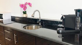 PokojeV jednom z 3 pokojů s osobitou výzdobou, k jejichž vybavení patří kuchyňský kout, lednička/mraznička a varná deska, se budete cítit jako doma. K pokoji náleží vlastní balkon. Bezdrátový internet zdarma vám zajistí spojení se světem a Smart televize (14 palcová), která nabízí digitální kanály, dobrou zábavu. Další užitečné vybavení a služby: minibar (částečně zpoplatněný) a mikrovlnná trouba. Úklid pokojů se provádí denně.
