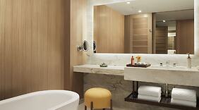 ΔωμάτιαΝιώστε σαν στο σπίτι σας σε ένα από τα 299 κλιματιζόμενα δωμάτια, όπου υπάρχουν μίνι μπαρ και τηλεοράσεις Smart. Το κρεβάτι σας (memory foam) διαθέτει πουπουλένια παπλώματα και κλινοσκεπάσματα υψηλής ποιότητας (premium). Mπορείτε να είστε πάντα online με δωρεάν ασύρματη πρόσβαση στο ίντερνετ κι επίσης παρέχονται για τη διασκέδασή σας ψηφιακά κανάλια. Τα μπάνια διαθέτουν μπανιέρες ή ντους με ντους βροχής και δωρεάν προϊόντα προσωπικής περιποίησης.