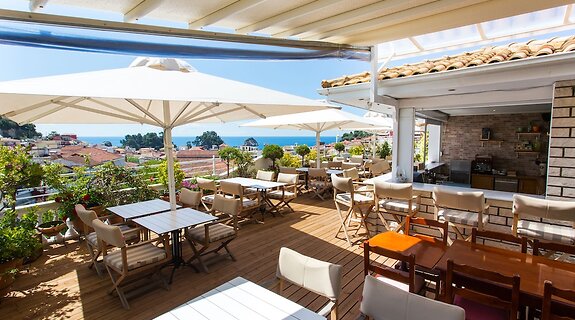 RestoranAkşam yemeği servisi için HORIZON ROOF GARDEN ideal; otelin restoranı Yunan mutfağı alanında uzman. Ayrıca kahve dükkânında/kafede yemek servisi ve oda servisi imkanı da mevcut. Barda/oturma salonunda misafirlerimize içecek servisi yapılmaktadır. Misafirlere her gün 8 ve 10 arasında ücretsiz açık büfe kahvaltı servisi yapılmaktadır.